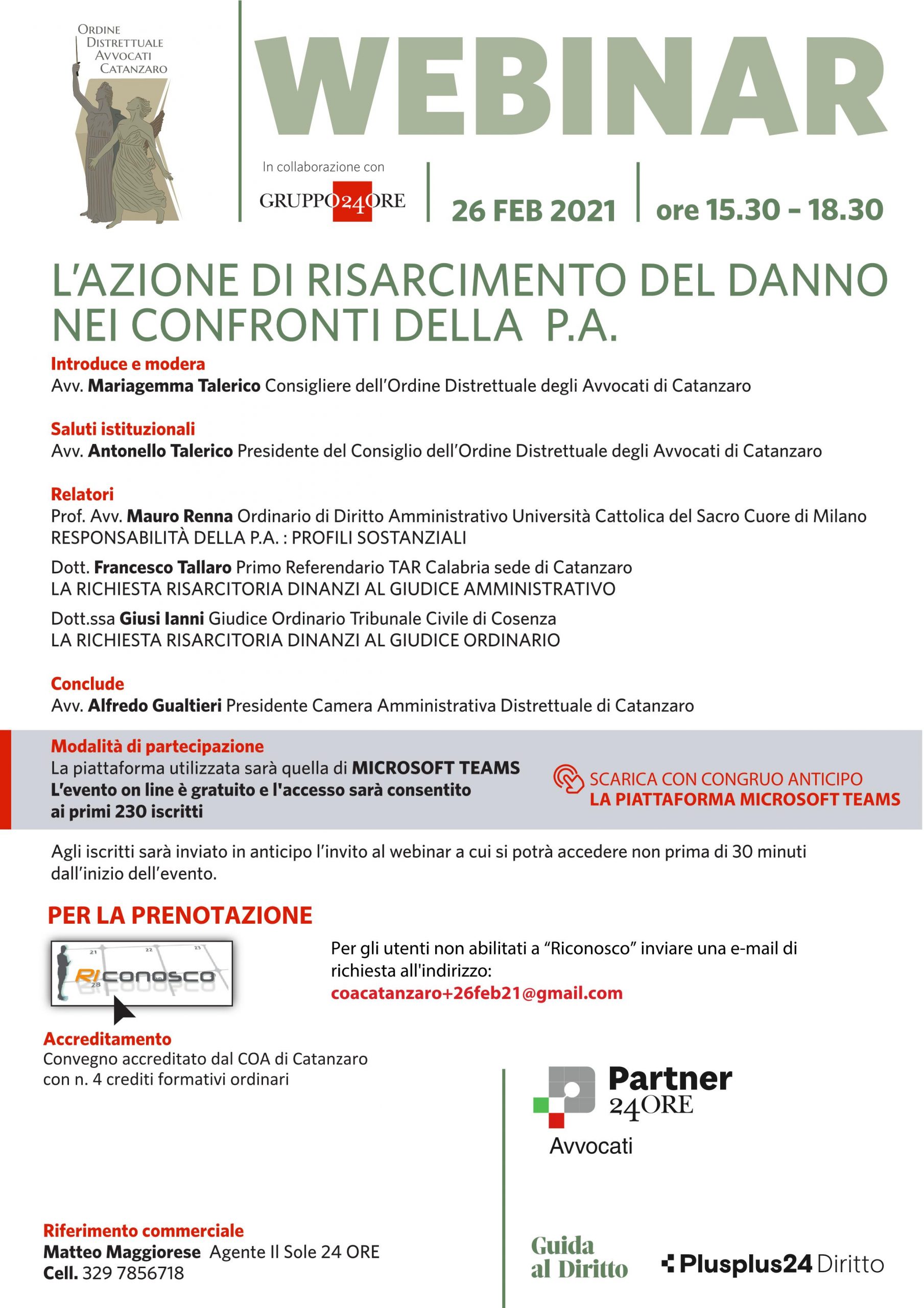 NELL’IMMINENZA DELL’EVENTO SARA’ TRASMESSO AI PARTECIPANTI IL LINK PER IL COLLEGAMENTO ALLA PIATTAFORMA TEAMS